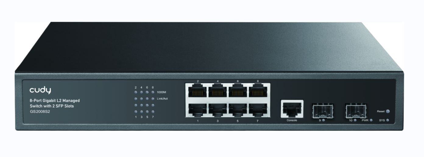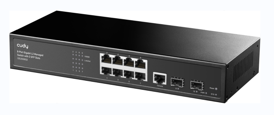 ● 8× Gigabit Ethernet Ports+ 2× Gigabit SFP Slots + 1× Console Port