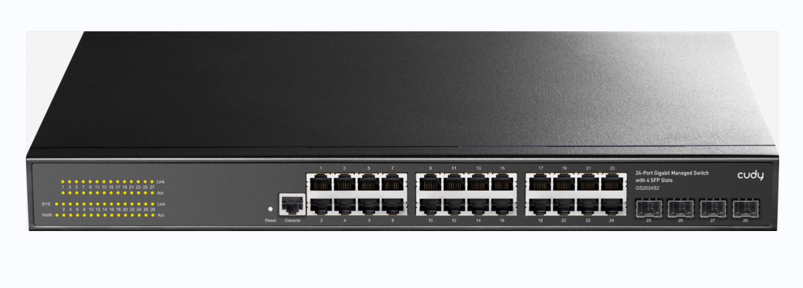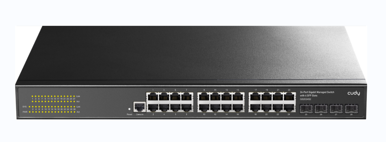 ● 24× Gigabit Ethernet Ports + 4× Gigabit SFP Slots +1× Console Port
