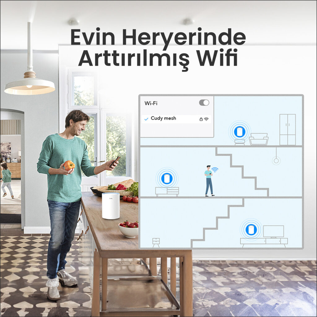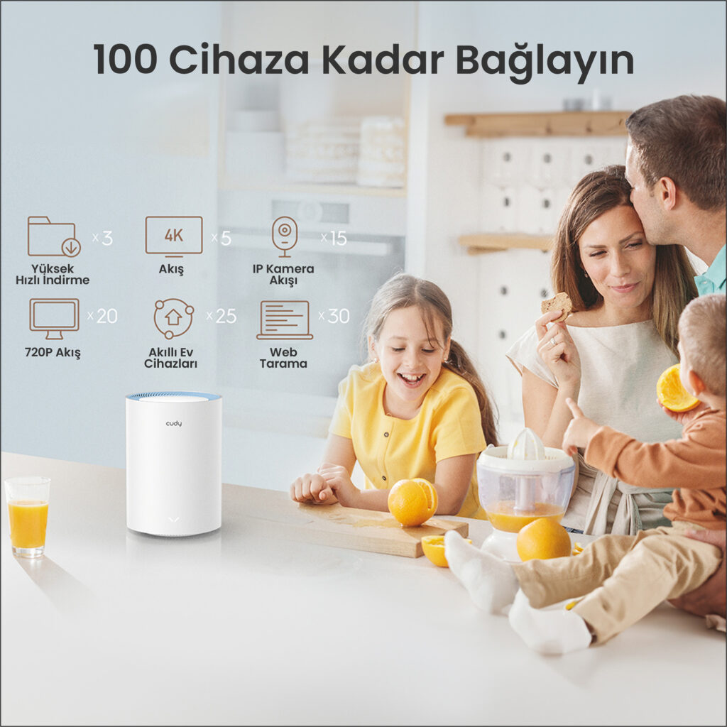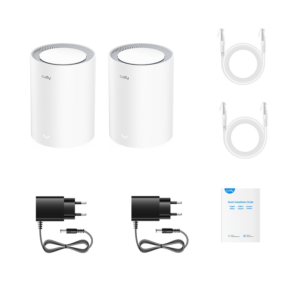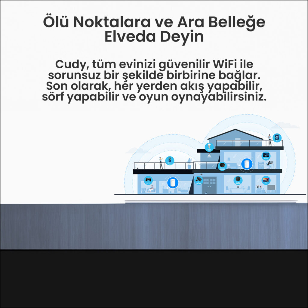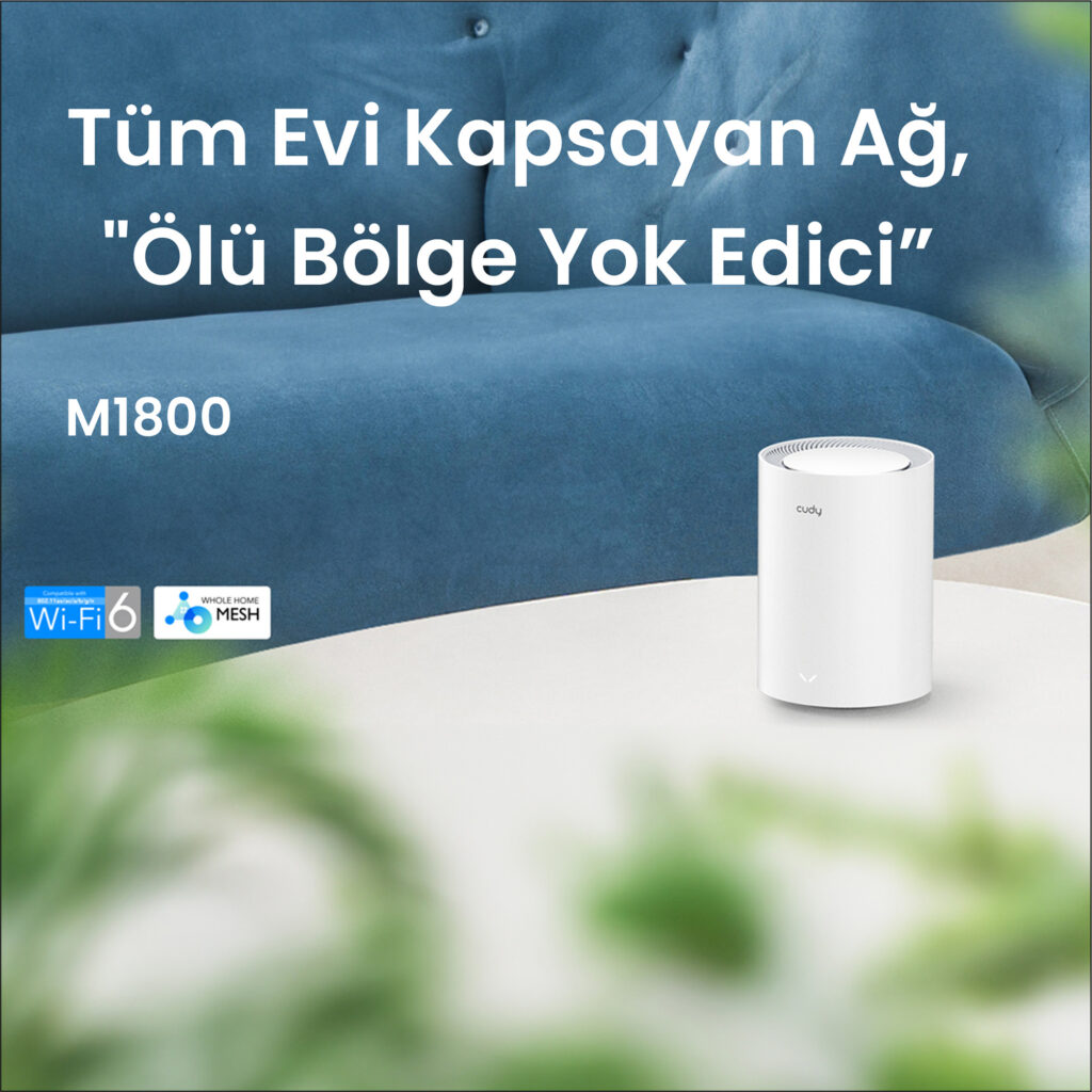 Cudy M1800 5GHz/2.4Ghz 1200Mbps 2xGigabit Ethernet Port,4 Dahili Anten,Wi-Fi 6 Mesh Router (2 Adet)