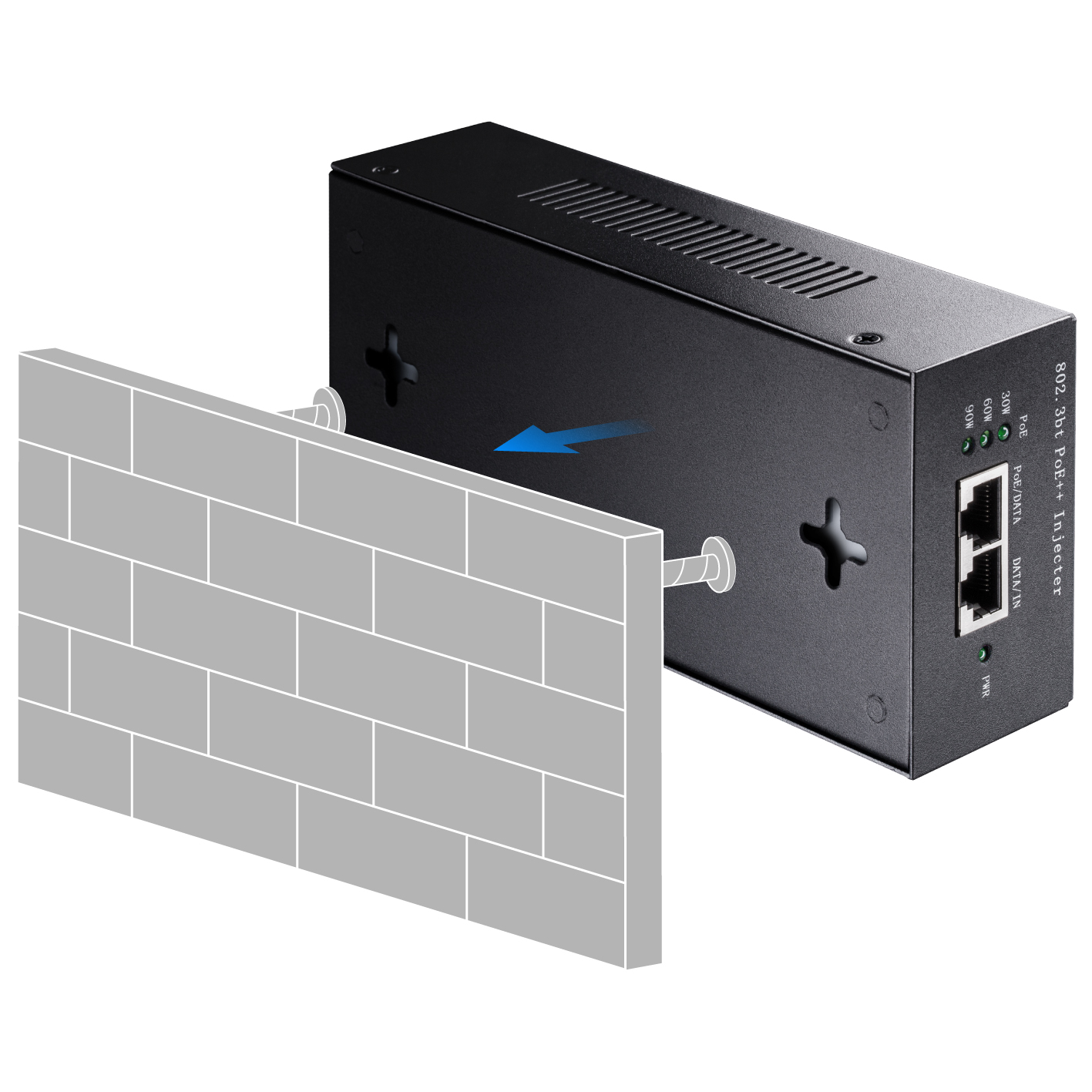 90W Gigabit PoE++/PoE+/PoE Injector, 802.3bt/at/802.3af Standard, Data and Power Carried over The Same Cable Up to 100 Meters, Wall Mount, Metal Case